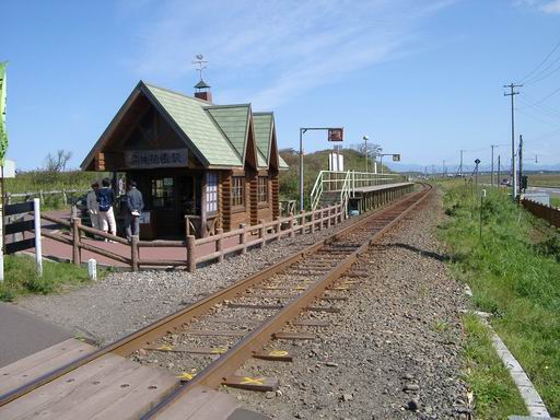 小清水原生花園の季節限定臨時駅「原生花園駅」には駅長さんが居て、観光客との話に興じていた。