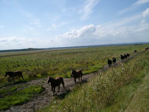 ここでは馬が沢山放牧されていて、群れを成して走っていた。