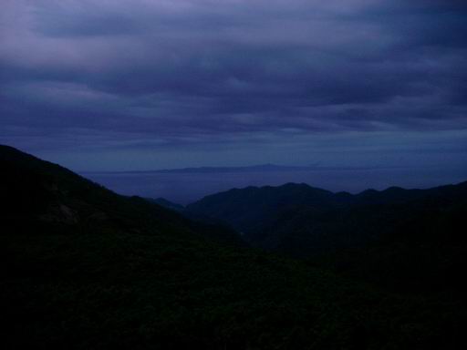 西ではとうとう日没してしまい、そして東に薄暗く国後島が浮かび上がる。